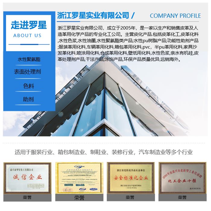 主營產品: 水性聚氨酯,皮革化工,皮革化料,水性樹脂,水性粘合劑